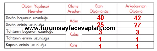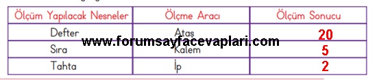 2 Aşağıdaki nesnelerin uzunluğunu tabloda belirtilen ölçme araçları ile önce siz ölçünüz, sonra bir arkadaşınıza ölçtürünüz.