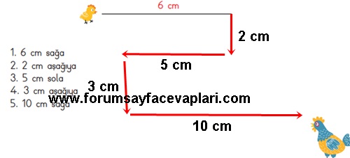 3 Aşağıda verilen uzunlukları cetvelle çizerek civcivi, anne tavuğa ulaştırınız.