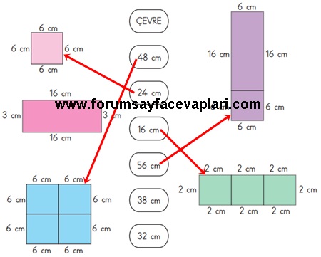 2 – Aşağıdaki şekilleri çevre uzunlukları ile eşleştiriniz.