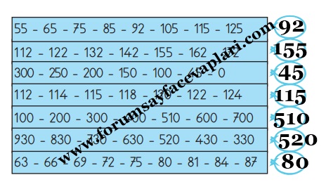 2 – Aşağıdaki sayı örüntülerini inceleyerek boş bırakılan yerleri tamamlayınız.