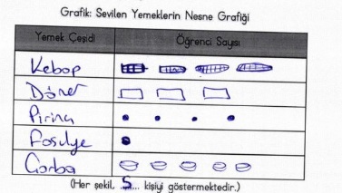 4 – Sınıfınızdaki arkadaşlarınızın en çok sevdiği 5 yemeği belirleyiniz. Toplanan veriler doğrultusunda nesne grafiği oluşturunuz.