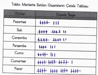 Marketin sattığı gazeteleri çetele tablosu üzerinde gösteriniz.