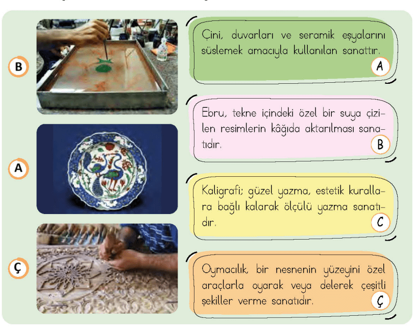 Tanıtılan geleneksel el sanatları ile görselleri eşleştiriniz.